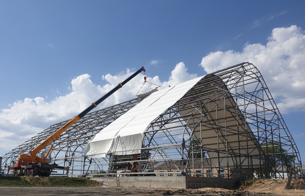 Каркасно-тентовое укрытие хоккейного катка на стадионе "Труд"